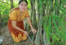 Hi everyone. Today I bring you to see yummy dried bamboo shoot cooking. I dig bamboo...
